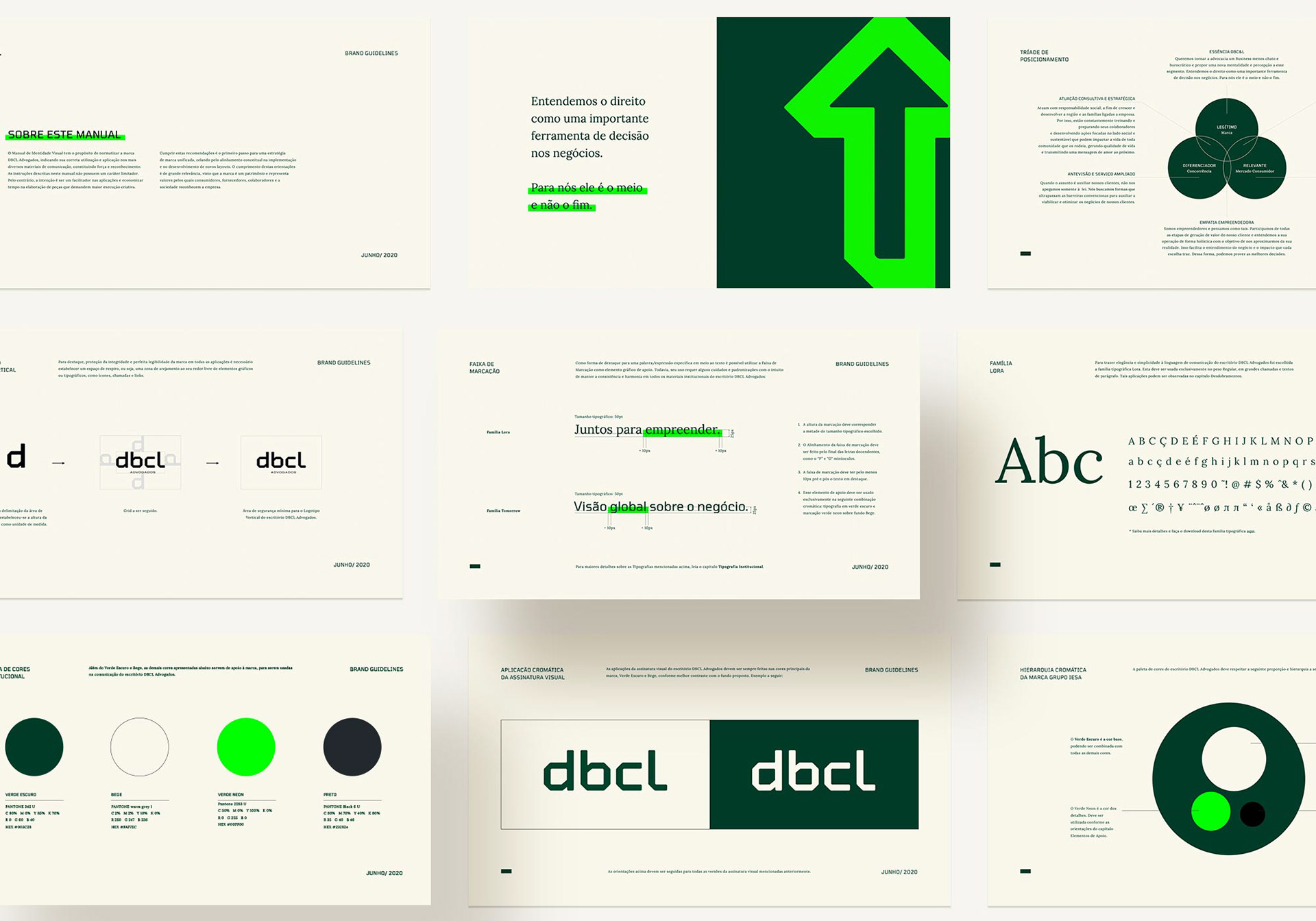 EN The new brand development process main goal was to demonstrate through its essence and visual language that DBCL does not act the same way as traditional law firms. Thus we seek to create a disruptive positioning within the legal segment, which is so conventional, in order to generate connection and value for their client profile. Subsequently, this “rebellion” was represented by the logo, typography, colors and elements that are part of the visual identity. The brand was redesigned connect with people, sharing dreams, even if there are risks along the way.