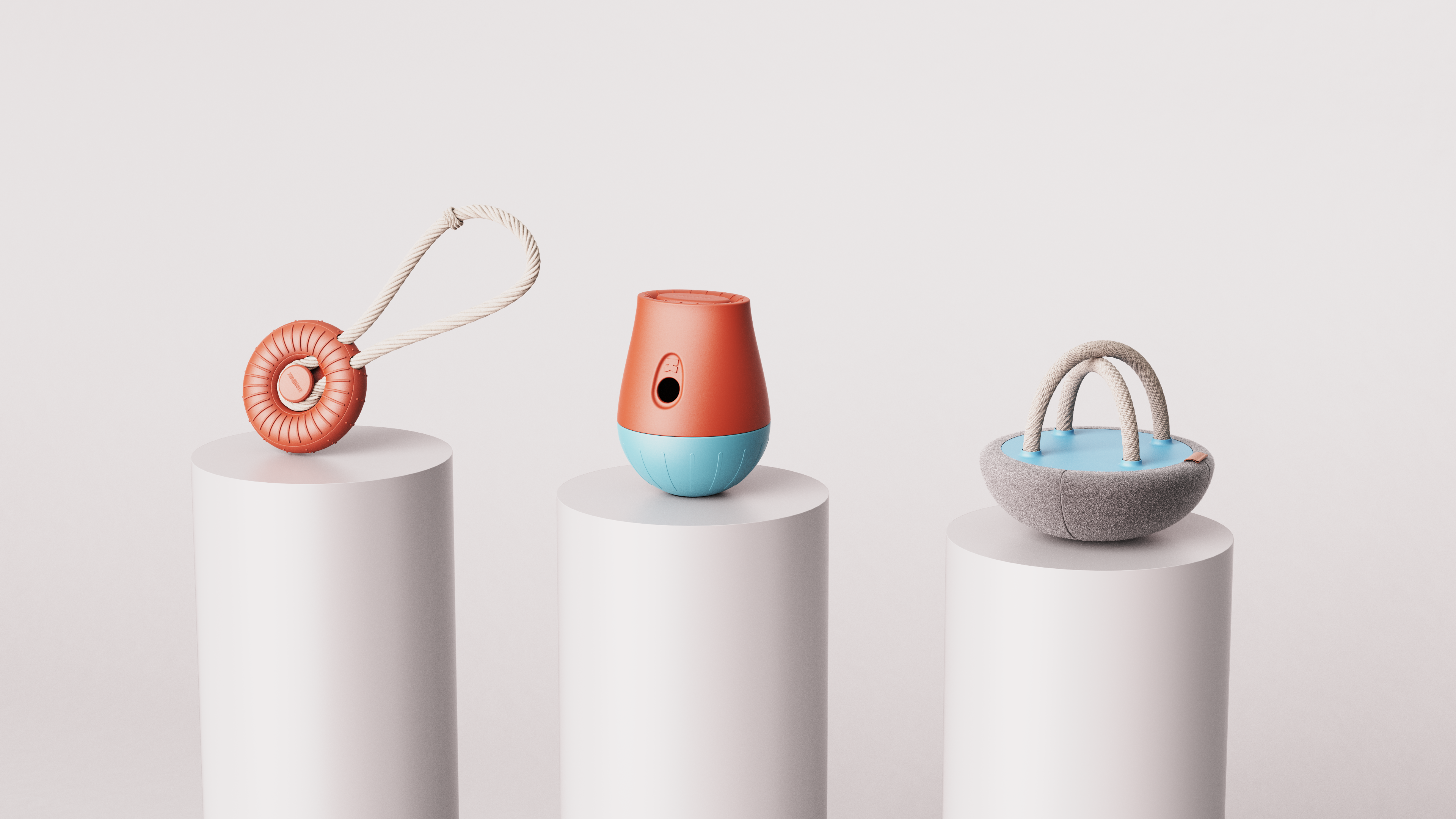 O resultado foi uma linha de composta por 3 tipos de brinquedos, cada um com funções especificas:. O wobbler para visa entreter o cão quando está sozinho, o mordedor/cabo de guerra ajuda a ensinar controle da boca ao mesmo tempo que massagea as gengivas do cão. A pelúcia tem a função de ensinar o controle da força da mordida.