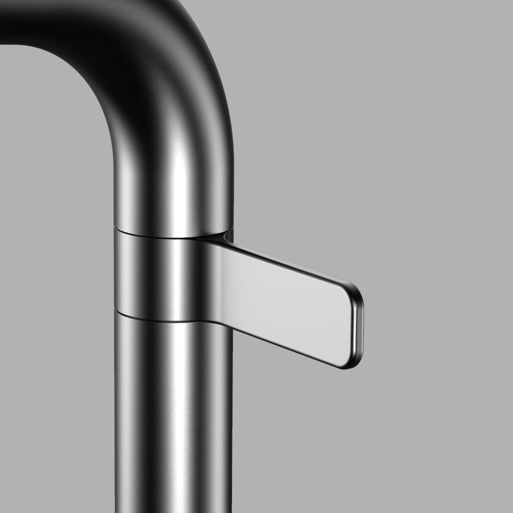 PT Com desenho minimalista e atemporal, a torneira Click se alinha aos padrões arquitetônicos e de decoração das cozinhas atuais. Disponível em diversas cores e acabamentos, possui 2 tipos de acionamentos em um único corpo, sendo um por alavanca e outro por clique frontal, proporcionando maior mobilidade, melhor experiência de uso, acessibilidade para pessoas com alguma restrição motora ou deficiência nas mãos, economia de espaço na bancada e, principalmente, de água. O design é centrado nas pessoas e em suas necessidades; por isso, há uma atenção à questão funcional e ergonômica no projeto. Todos os componentes estão reunidos em um único corpo. A manopla de acionamento d’água (que regula a sua intensidade) é em forma de alavanca, que facilita a sua utilização. Além disso, há um generoso botão na parte frontal, que pode ser clicado para interromper ou acionar o fluxo de água de diversas maneiras (não necessariamente com as mãos). A bica e o arejador da torneira também são móveis, proporcionando ainda mais versatilidade e uma melhor experiência de uso do produto.